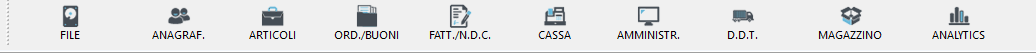 L'insieme delle funzioni dell'applicativo sono riepilogate nel menu orizzontale in alto del pannello principale.